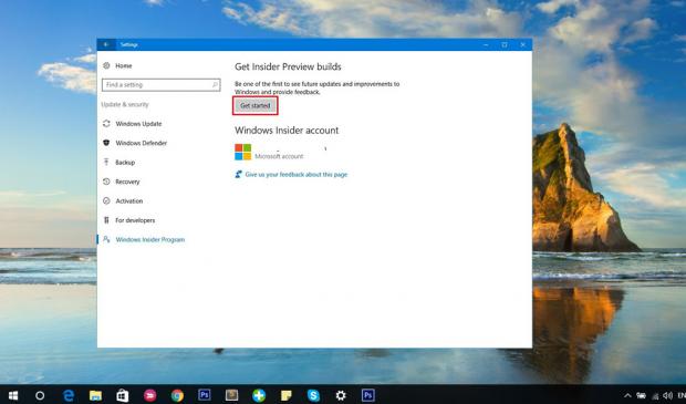 Bước 1: Vào Settings > Update & security > Windows Insider Program, nhìn khung bên phải chọn Get started