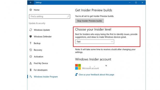 Bước 2: Khởi động lại máy tính. Vào Windows Insider Program, sau đó trong tùy chọn Choose your Insider level, bạn hãy chọn chế độ mong muốn (khuyến nghị: Fast ring)