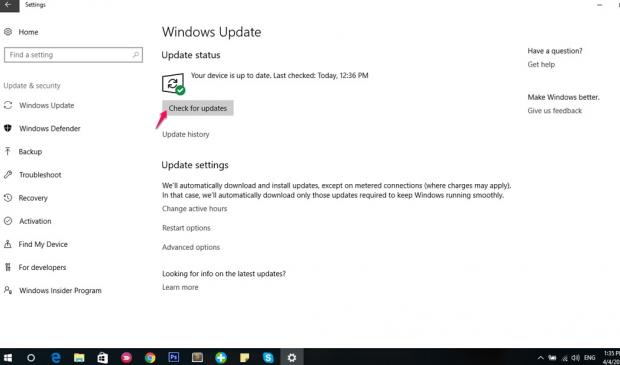 Vào Settings > Update & security, nhìn khung bên phải chọn Check for updates