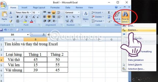 Việc thay thế từ, số liệu trong Excel cũng gồm 2 lựa chọn khác nhau.