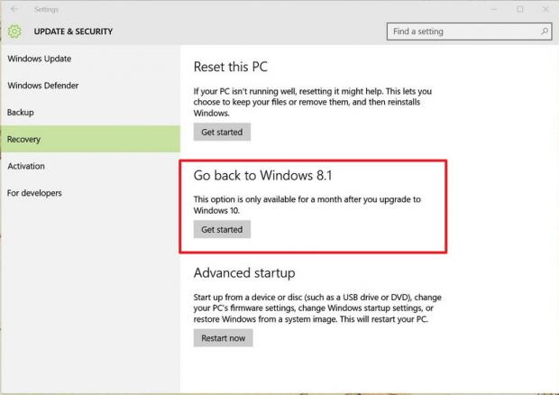 4. Nếu mới nâng cấp lên Windows 10, bạn sẽ nhìn thấy mục Go back to Windows 7 hoặc Go back to Windows 8.1.