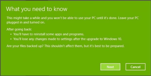 7. Đọc kỹ tất cả các cảnh báo về những gì sẽ xảy ra với các ứng dụng và thiết lập trong quá trình hạ cấp và click chọn Next.