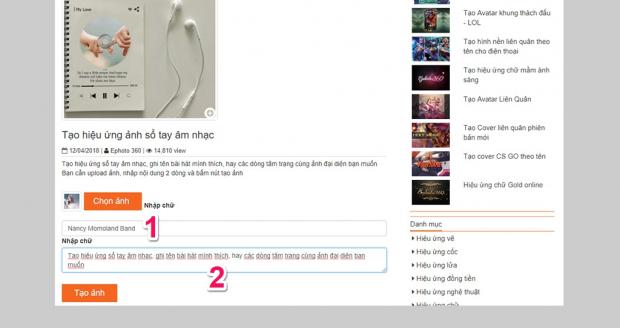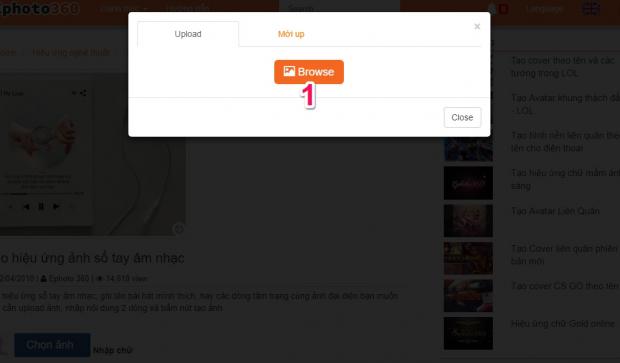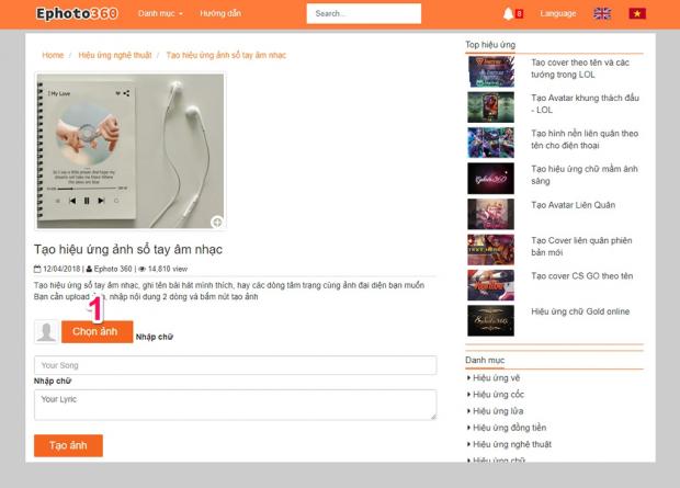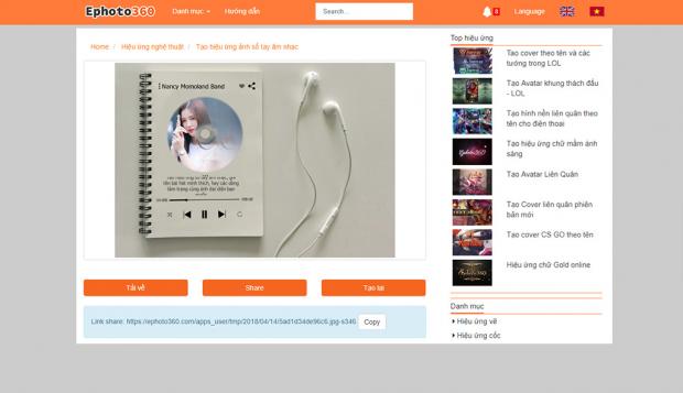 Bước 1: Truy cập liên kết ephoto360.com > chọn mục Sổ tay âm nhạc > Tải lên ảnh muốn dùng làm cover
