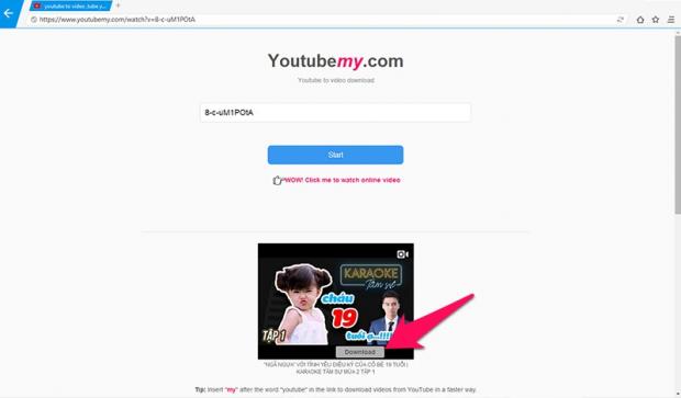 Bước 2: Trên thanh địa chỉ, bạn thêm từ 'my' và cuối liên kết YouTube sau đó nhấn Enter để load lại trang mới. Ví dụ: