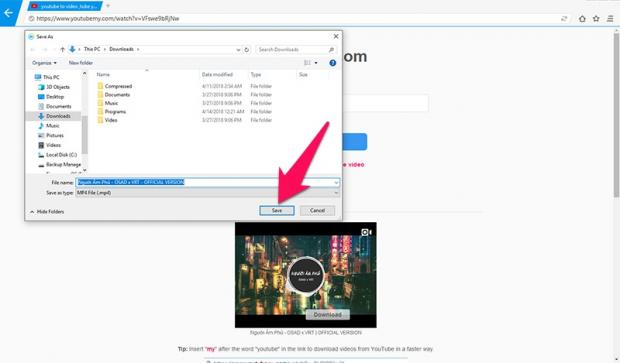 Tải trực tiếp (sau khi nhấn nút download sẽ hiện luôn khung thông báo với tùy chọn vị trí lưu trữ video).