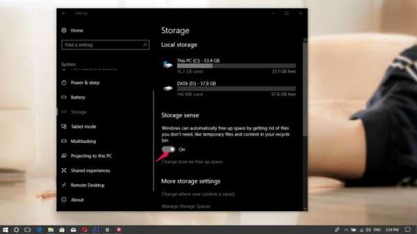Bước 1: Truy cập Settings > System > Storage, dưới tùy chọn Storage sense bạn hãy click để chuyển sang On.