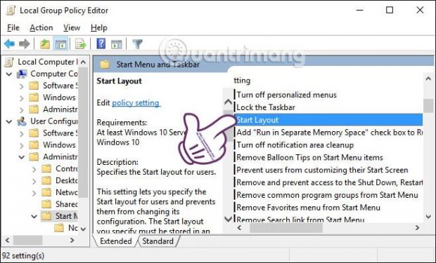 Cũng tại giao diện bên phải, bạn tìm và nhấp đúp chuột vào mục Start Layout.