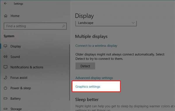 Bước 3: Tại đây bạn di chuyển xuống cuối trang và chọn vào mục Graphics settings.