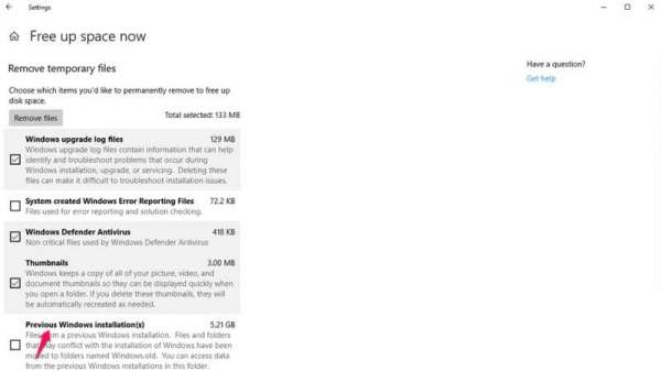 Nếu bạn muốn quay về phiên bản Windows trước đó thì hãy chắc chắn rằng mình không xóa thư mục Windows.old nằm trong ổ C (ổ chứa hệ điều hành), hoặc không xóa bản sao lưu bằng cách vào Settings > System > Storage > Free up space now và xóa mục Previous Windows installation(s).
