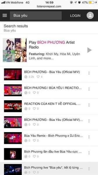 Tại đây, các bạn gõ tên video hoặc bài hát mà mình muốn lặp đi lặp lại vào ô tìm kiếm rồi nhấn Enter.