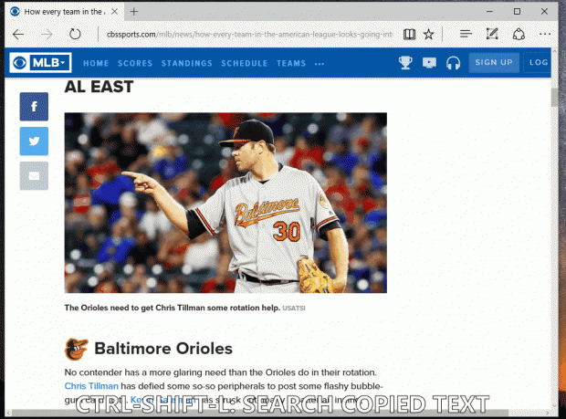 Nhấn tổ hợp phím Ctrl + Shift + L để mở khung Search Bing của đoạn văn bản mà bạn sao chép trên clipboard. Kết quả sẽ được mở trên tab hiện tại.