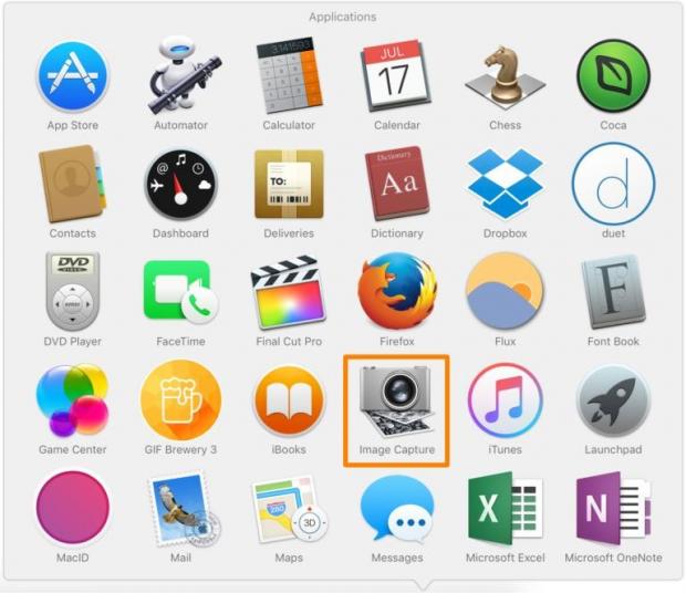 Chúng ta mở ứng dụng Image Capture trong máy Mac. Bạ hãy vào thư mục Applications để tìm kiếm ứng dụng Image Capture.