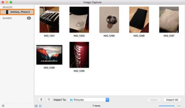 Lưu ý, để có thể sử dụng Image Capture bạn cần phải sử dụng dây nối USB giữa hai thiết bị.