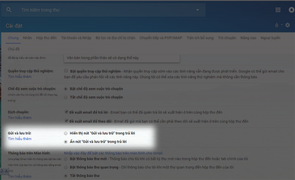 Nếu bạn muốn dọn dẹp hộp thư đến mà không xóa email của mình thì bạn có thể lưu trữ hoặc ẩn chúng. Email của bạn được chuyển đến một nhãn được gọi là Tất cả thư. Để thiết lập, hãy nhấp vào biểu tượng bánh răng ở trên cùng bên phải và đi tới Cài đặt > Chung > Gửi và lưu trữ, chọn Hiển thị nút 'Gửi và lưu trữ' trong trả lời rồi cuộn xuống và nhấn nút Lưu thay đổi.