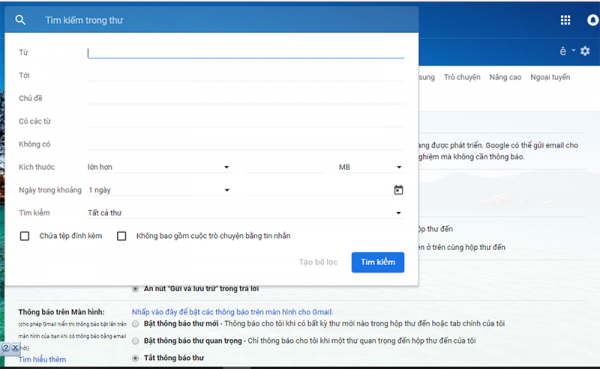 Gmail mới đây cung cấp cho người dùng chức năng tìm kiếm nâng cao. Bạn có thể đã sử dụng thanh tìm kiếm phía trên hộp thư đến của mình để tìm ra một email cũ dựa trên từ khóa hoặc người gửi, và giờ đây nó có thể làm được nhiều hơn thế. Nhấp vào nút mũi tên xuống nhỏ ở bên phải thanh tìm kiếm để mở bảng điều khiển tìm kiếm nâng cao của Gmail, nơi bạn có thể tìm kiếm theo các bộ lọc như ngày và kích thước tệp đính kèm, dòng chủ đề và các bộ lọc khác.