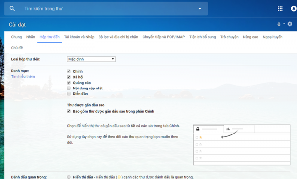 Gmail giờ đây có thể lọc hộp thư đến của bạn giúp các thư bạn quan tâm được chuyển đến hộp thư đến của bạn trong khi phần còn lại được chuyển xuống tab Xã hội hoặc Quảng cáo. Chuyển đến Cài đặt > Hộp thư đến > Danh mục và bạn có thể chọn tab nào bạn muốn ở trên cùng.