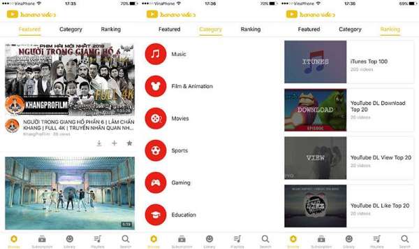 Tại giao diện chính của BananaVideo, bạn sẽ thấy một số chức năng quen thuộc như video phổ biến, xem theo chủ đề, bảng xếp hạng, nội dung từ kênh đang theo dõi, thư viện, playlist hay công cụ tìm kiếm