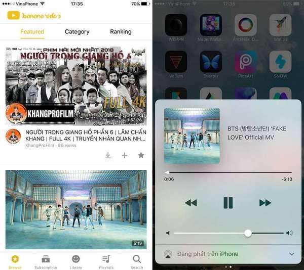 Để mở nhạc trong nền bạn chỉ cần chọn và phát video muốn dùng, sau đó thoát ra màn hình chính của thiết bị (hoặc khóa máy) là xong.