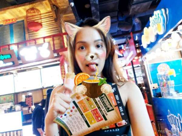 Nếu muốn siêu cute nữa thì sử dụng các sticker vui nhộn có sẳn ngay trong ứng dụng chụp ảnh. Bảo đảm trẻ thêm 10 tuổi luôn. Ahihi...