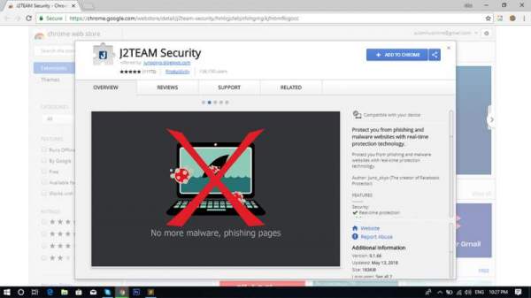 Bước 1: Click + ADD TO CHROME để tiến hành cài đặt extension J2TEAM Security như hình dưới.