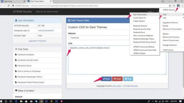 Bước 2: Sau khi cài đặt hoàn tất, hãy click phải vào chữ J > Tools > Dark Theme Editor. Tiến hành thêm đoạn code này vào và click Save để lưu lại.