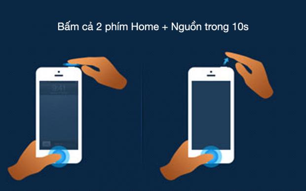 - Ngoài ra để giải quyết tình trạng trên nếu bạn không muốn chờ đợi quá lâu để hệ thống cập nhật có thể sử dụng tổ hợp phím Home + nút nguồn giữ liên tục trong 10 -20 giây đến khi màn hình xuất hiện logo của Apple thì máy sẽ lại bình thường.