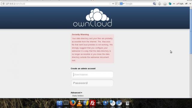 Bây giờ bạn có thể truy cập trực tiếp ứng dụng ownCloud bằng đường dẫn :