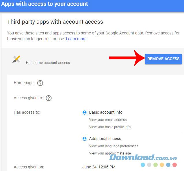 4. Xóa quyền truy cập tài khoản Gmail của ứng dụng thứ ba