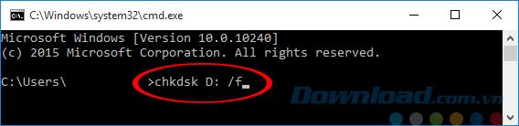 Tất nhiên, cửa sổ lệnh này cũng phải được mở với quyền admin. Có thể thay thế chữ cái trong lệnh bằng các ổ khác trên máy tính để kiểm tra hoặc giải phóng ổ cứng cho máy tính.