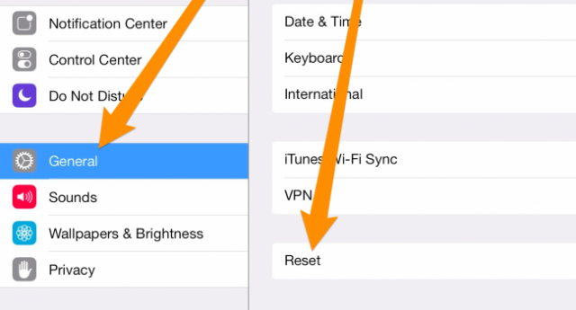 Trước tiên, bạn hãy mở bảng điều khiển Settings, vào General, và sau đó di chuyển xuống phía dưới để tìm mục Reset.