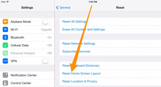 Tiếp theo, bạn vào phần Sử dụng lại Trang chủ màn hình Giao diện tùy chọn (Reset Home Screen Layout option)