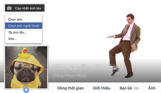 Tiếp theo, bạn truy cập vào trang Facebook cá nhân, nhấn nút Cập nhật ảnh bìa ở góc trên bên trái và chọn Chọn ảnh nghệ thuật. Mặc định, Facebook chỉ mới hỗ trợ một số ít video đơn giản, đa phần đều là ảnh tĩnh.