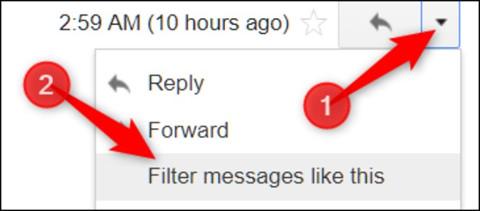 Thay vì sử dụng nút “Chặn” giống như nhiều ứng dụng email client, Gmail có tính năng lọc thư mạnh mẽ mà bạn có thể sử dụng cho tất cả mục đích của mình. Ở bài viết này, chúng ta sẽ sử dụng một bộ lọc để tự động xóa các tin nhắn từ một người cụ thể.Trước tiên, mở một trong các email từ người bạn muốn lọc ra khỏi hộp thư đến của mình. Từ đây, bạn có thể nhấp vào mũi tên bên cạnh nút trả lời, sau đó chọn lệnh “Filter messages like this”.