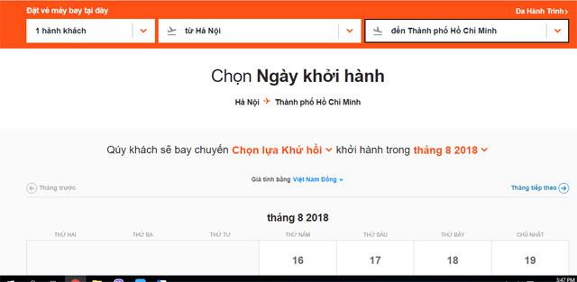 Trước tiên là mục Chọn Ngày khởi hành: hãy lựa chọn ngày bạn muốn đi, bạn có thể lựa chọn ngày tương đối bởi về sau chúng ta có thể điều chỉnh ngày để có giá vé rẻ nhất.