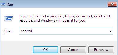 - Nhập từ khóa 'Control Panel' vào khung Open rồi Enter