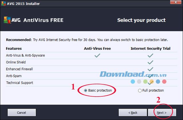 - Basic protection: Lựa chọn cài đặt bản Anti-Virus Free.