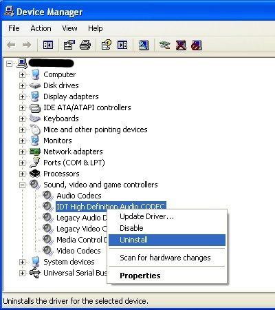 - Nhấn phải chuột vào thiết bị âm thanh cần cài lại driver, chọn Uninstall.