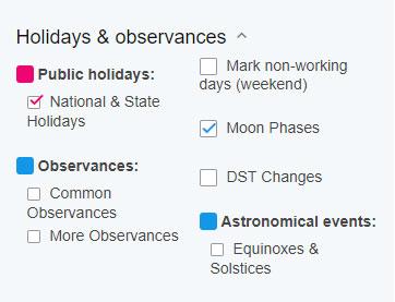 Tại mục Holidays & observances cho phép người chơi có những tùy chọn cho cuốn lịch hoàn hảo hơn với theo cách riêng của người dùng.