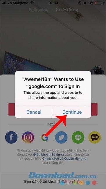 Lập tài khoản Tik Tok bằng tài khoản Google