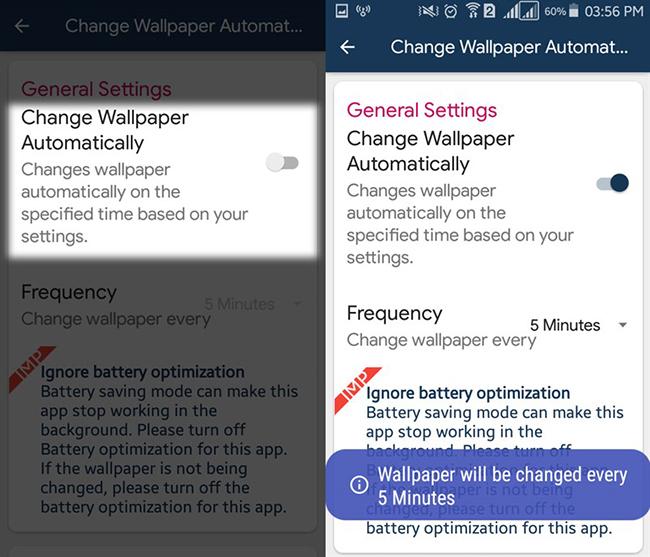 - Change Wallpaper Automatically: Bật kích hoạt chế độ tự động thay đổi ảnh nền.