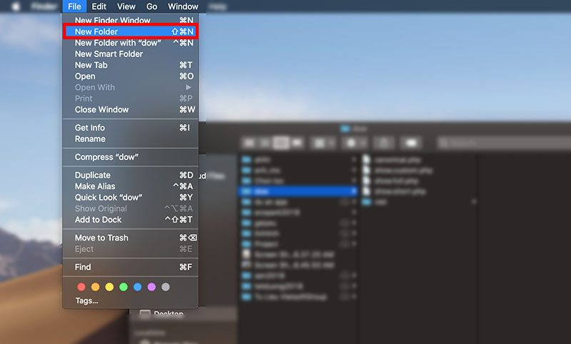 Tại khung cửa sổ MacOs, trên thanh Menu (Góc trái trên cùng) lựa chọn File > New Folder