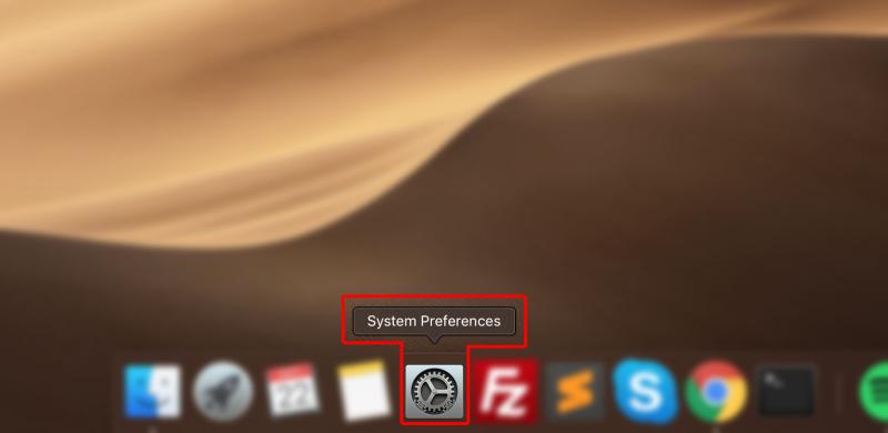 B1 : Tại màn hình Desktop chọn hình bánh răng 'System Preferences' góc gưới màn hình.