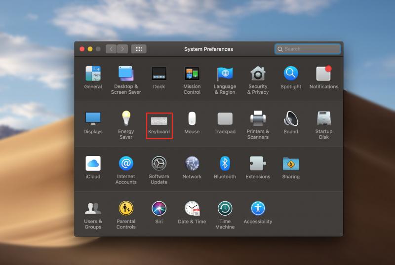 B2 : Lựa chọn 'Keyboard' trên khung cửa sổ 'System Preferences'