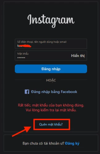 Bước 1: Bạn nhấn vào “ quên mật khẩu: tại giao diện đăng nhập Instagram.