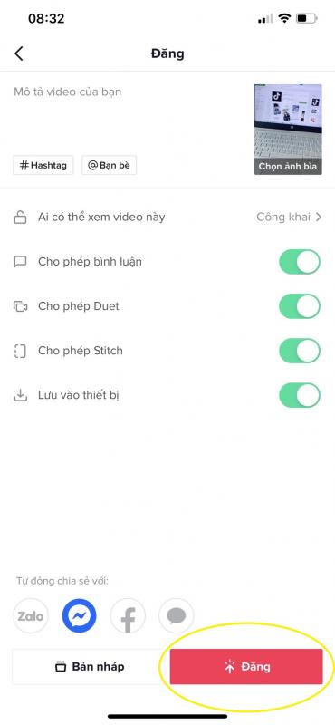 Chúng ta sẽ đến với giao diện Đăng. Tại đây hãy nhập nội dung cho video vừa làm, thêm hashtag, tag bạn bè. Chọn chế độ bảo mật, bật tắt bình luận, vv