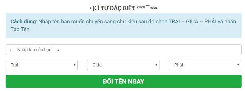 Hôm nay Trang Công Nghệ sẽ chia sẻ với các bạn một công cụ tạo tên nhân vật trong game. Đây là một trong những công cụ tạo tên game hay bằng kí tự đặc biệt đẹp nhất. Đó chính là công cụ KÍ TỰ ĐẶC BIỆT DAICHUATE. Một ứng dụng đang các game thủ thường xuyên sử dụng để tạo ra các tên nhân vật trong game HOT nhất hiện nay.