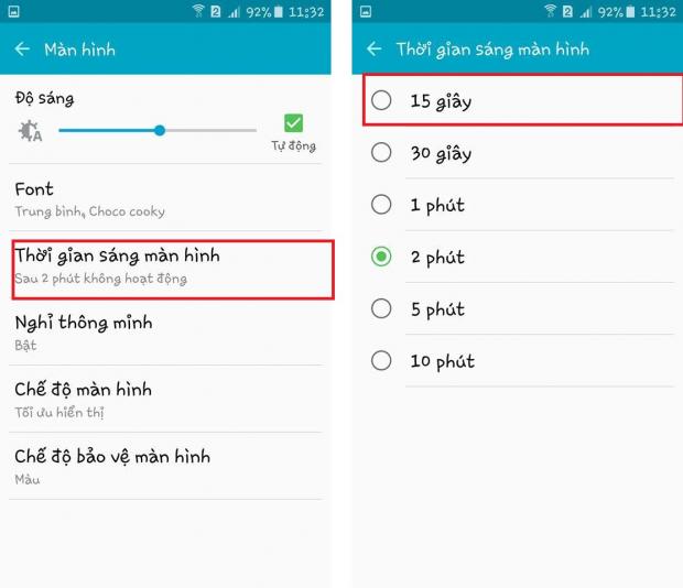 Nếu thật sự không cần thiết, thì bạn hãy chọn thời gian 15 giây để tắt màn hình ngay khi ngưng sử dụng.