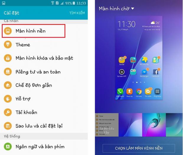 - Hoặc bạn vào Cài đặt > hiển thị và hình nền > màn hình nền.