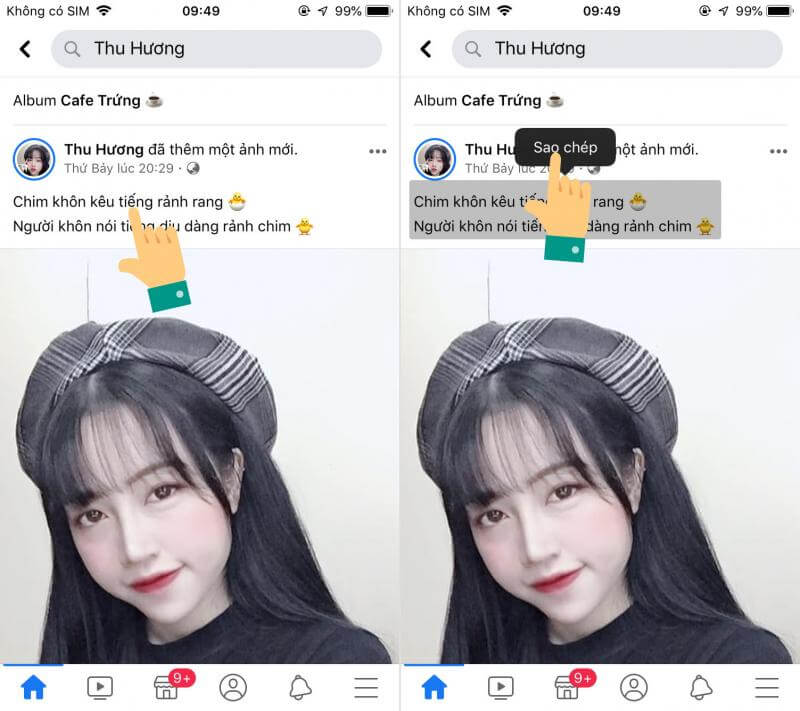 Cách làm: Bạn chỉ cần nhấn giữ vào phần văn bản muốn copy, chờ khoảng 2-3s, thả tay ra. Facebook sẽ hiển thị tùy chọn Sao chép văn bản. Bạn chỉ cần click chọn vào đó là thành công. Giờ đây, việc của bạn là đăng lên tường của mình hoặc gửi tin nhắn cho bạn bè thông qua Messenger mà thôi.