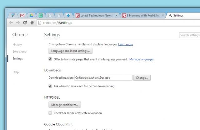 Để nhanh chóng truy cập vào file bạn vừa tải mà không phải mở thêm một cửa sổ, bạn có thể thay đổi nơi file tự động tải xuống. Hãy truy cập Settings (hoặc gõ vào hộp địa chỉ chrome://settings/), cuộn xuống và click vào link Advanced Settings, tiếp theo cuộn xuống mục Downloads. Ở đó, bạn có thể thay đổi nơi lưu file.